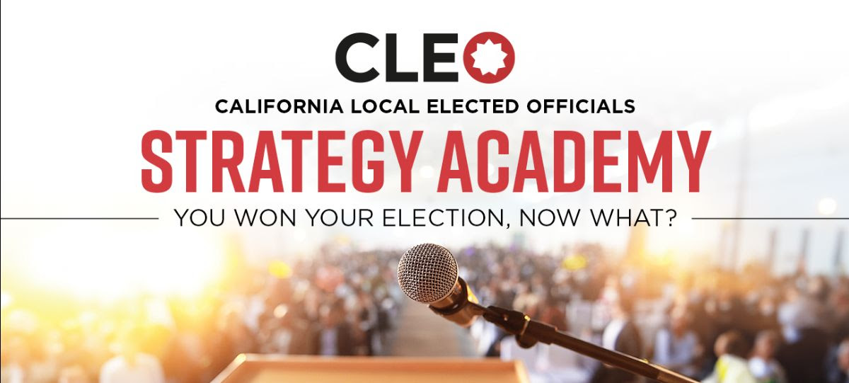 We know you’re excited to hit the ground running. That’s why we’re pleased to invite you to CLEO’s virtual Strategy Academy: You Won Your Election, Now What? Effective Strategies for Your First 100 Days. This is a FREE training session presented by California Local Elected Officials (CLEO) for every elected official who wants to make the most of their new term.
